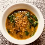 SOLD FROZEN. A healthy veggie soup full of umami goodness. Made with cubes of butternut squash, roasted mushrooms, bulgur wheat ( high in fiber) and spinach in a miso broth.